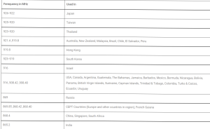 - جدول فرکانس های مورد استفاده در مناطق مختلف جهان